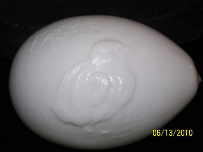 ANTIQUE BLOWN MILK GLASS EASTER EGG WITH EMBOSSED CHICK