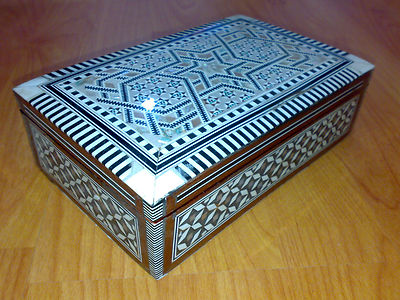 Title (ebay affiliate link): Mother of Pearl Wooden Box 100% Authentic Inlaid Egyptian Hand Made 20x12.5x6 cm