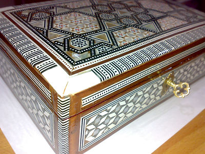 Title (ebay affiliate link): Mother of Pearl Jewelry Box 100% Inlaid Egyptian Hand Made 20cm x 12.5cm x 6 cm