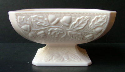 JEANNETTE SHELL PINK MILK GLASS CANDY DISH ACORN LEAF