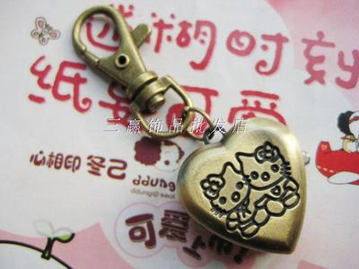hello kitty heart love key chain Steampunk Vintage style pocket clocket watch