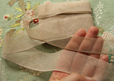 Title (ebay affiliate link): ANTIQUE FINE FLAPPER TULLE LACE 4YARD LOT RIBBONWORK NET TRIM DOLL DRESS ECRU