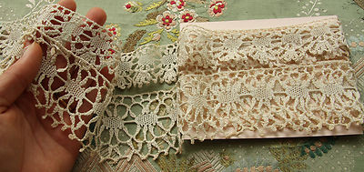 ANTIQUE COTTON LACE TRIM LOT TURTLE BRAID HANDMADE CROCHET DOLL DRESS BEAR
