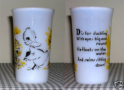 HAZEL ATLAS milk glass D is for DUCKLING childs tumbler