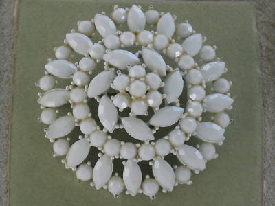 WEISS white milk glass RHINESTONE BROOCH PIN vintage