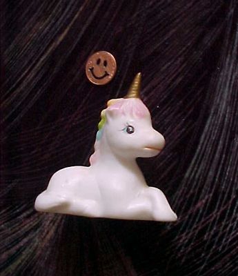 Title (ebay affiliate link): Vintage Miniature Porcelain Unicorn + Happy Face Penny Made in Taiwan