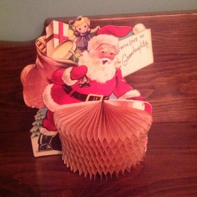 Title (ebay affiliate link): Vintage Stand-up Santa Christmas card with honeycomb tissue