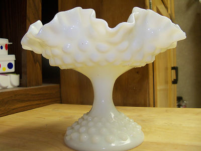 Title (ebay affiliate link): Fenton Hobnail White Milk Glass Compote Bowl w/Pedestal - Bought at Estate Sale