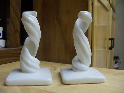 Title (ebay affiliate link): 2 Westmoreland White Milk Glass Spiral Lotus Twist Candlestick Candleholders