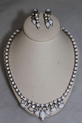 VINTAGE ESTATE MILK GLASS NECKLACE & EARRING SET
