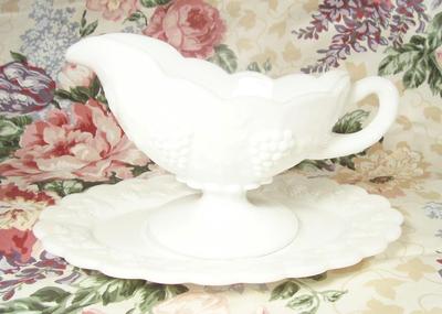 Title (ebay affiliate link): WESTMORELAND PANELED GRAPE MILK GLASS GRAVY BOAT & UNDERPLATE OVAL TRAY