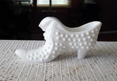 Lovely Vintage Hobnail White Milk Glass Shoe