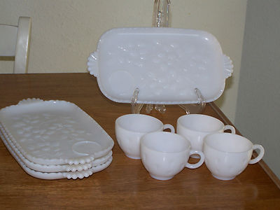 ESTATE SALE! ANCHOR HOCKING 8 pc. WHITE MILK GLASS HOSTESS / SNACK SET ~ DOGWOOD