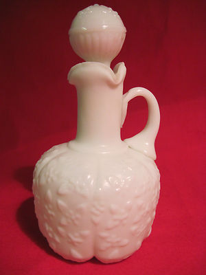 Title (ebay affiliate link): Antique EAPG Challinor Taylor Forget-Me-Not Milk Glass Cruet with Stopper
