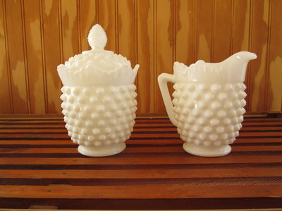Vintage Hobnail Sugar and Creamer set - White Milkglass