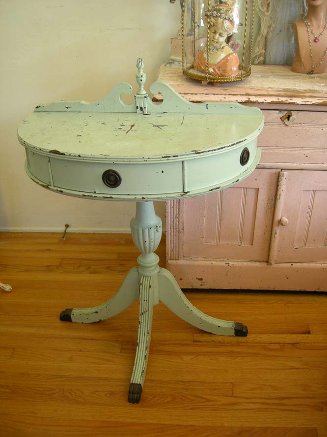 Beautiful Shabby Vintage Semi Circle End Accent Table