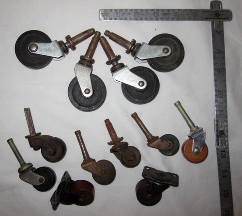 ANTIQUE FURNITURE CASTERS LOT SWIVEL WHEEL WOOD METAL VINTAGE OLD