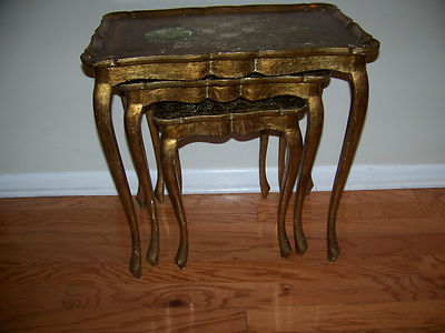 Title (ebay affiliate link): Vintage Nesting Gold Florentine Wood Tables Set 3 Stack Wooden Italian Ornate
