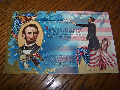 Title (ebay affiliate link): Abraham Lincoln Postcard - Centennial Souvenir! Posted in 1909!