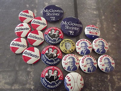 Title (ebay affiliate link): Vintage Goldwater, Johnson, McGovern Pin's, 18 Total, One Very Rare!!