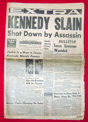 Title (ebay affiliate link): HERALD EXAMINER EXTRA NEWSPAPER John F. Kennedy ASSASSINATION Nov 22, 1963
