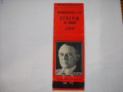 EARLY MONTAGUE MASSACHUSETTS LT. GOVERNOR JOHN W. HAIGIS MATCHBOOK COVER