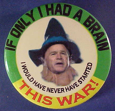 Title (ebay affiliate link): SCARCECROW Button Wizard OZ Satire Pin ANTI IRAQ WAR Pinback Guardfrog Hate Bush