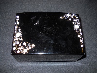 Title (ebay affiliate link): 5" Black Laquer Trinket Box w/Handpainted Pink Flowers on the Lid