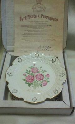 The Queen Victoria Rose patterned plate by Crown Davenport