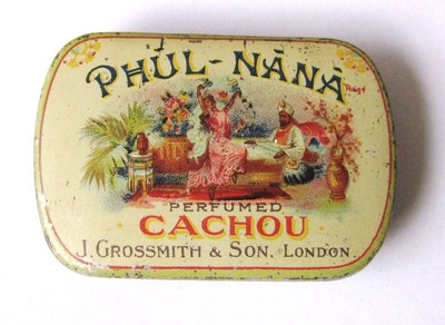 Title (ebay affiliate link): Rare Early 1900's J GROSSMITH & Son, Phul-Nana Litho Oriental Candy Tin Box