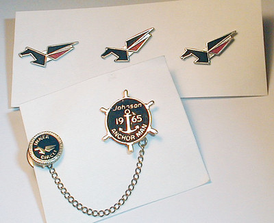 Title (ebay affiliate link): OLD JOHNSON OUTBOARD MOTORS MARINE ADVERTISING LOT PINS TIE TACKS 1965 ANCHORMAN