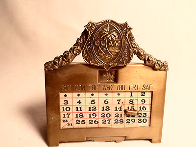 1940s VINTAGE BRASS GUAM USA MECHANICAL CALENDAR NICE DESKTOP COLLECTABLE