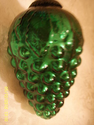 Antique Big Bunch of Grapes Green Glass Christmas Tree Ornament 6" Needs touchup