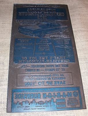Title (ebay affiliate link): VINTAGE 1970S METAL PRINT BLOCK MARION BURNSIDE CHRYSLER CAR DEALER COLUMBIA S.C