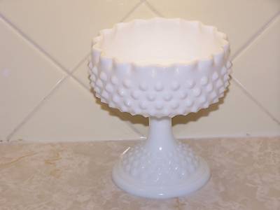 Fenton Milk Glass Hobnail Compote Crimped edge-Ex Cond.