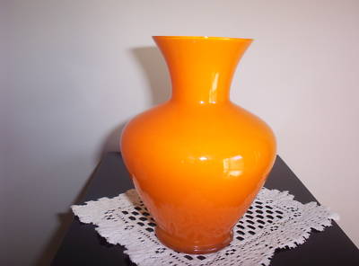 Antique Hot Orange Vase ~*~ Double Cased Milk Glass