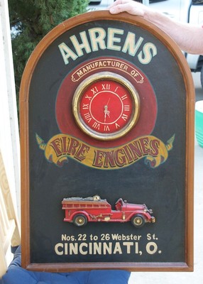 Large Ahrens Fire Engine Wall Clock - Antique Style