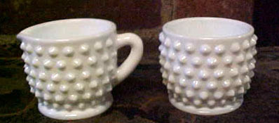 1951 FENTON IND WHITE MILK GLASS HOBNAIL SUGAR CREAMER