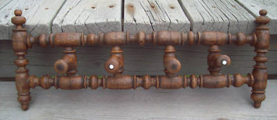 Vintage Wood Spindle Coat/ Hanging Wall Rack Milk Glass