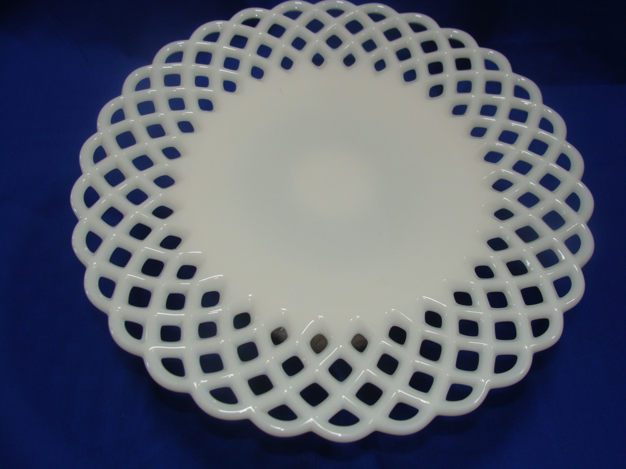 Vintage Milk Glass Pedestal Cake Plate Platter Nice