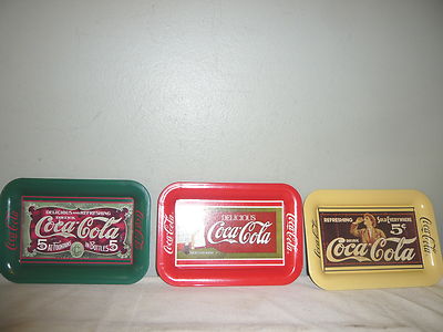 Title (ebay affiliate link): COCA COLA SMALL TIN ADVERTISING REPRODUCTION TRAYS-1989-LOT 3