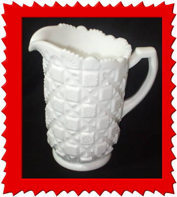WESTMORELAND GLASS "OLD QUILT" MILK WHITE PITCHER~8"~