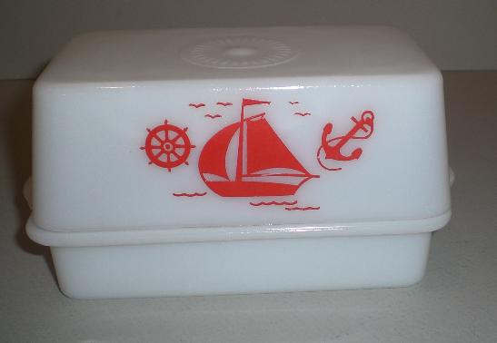 Vintage McKee Red Ships Milk Glass Butter Dish