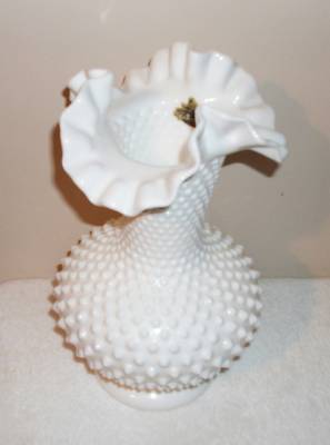 Large 11" Fenton White Milk Glass Hobnail Vase