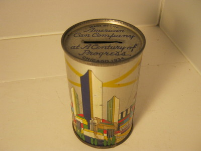 Title (ebay affiliate link): 1934 CANCO Tin BANK Canister AMERICAN CAN CO Century Progress Chicago SKYLINE