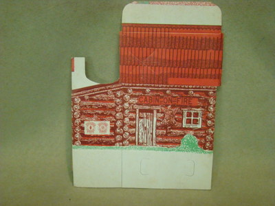 VINTAGE "CABIN ON FIRE" FIREWORKS BOX MANTSUNA FIREWORKS MFG EMPTY DISPLAY BOX