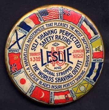 Leslie Safety Razor Celluloid Advertising Mirror Flags of the World