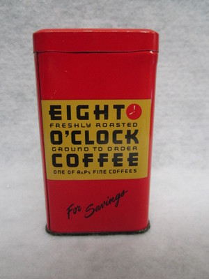 SMALL EIGHT O CLOCK COFFEE TIN CAN BANK in nice shape
