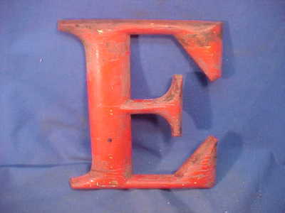 19thc WOOD Letter " E " Country Store SIGN LETTER Painted RED