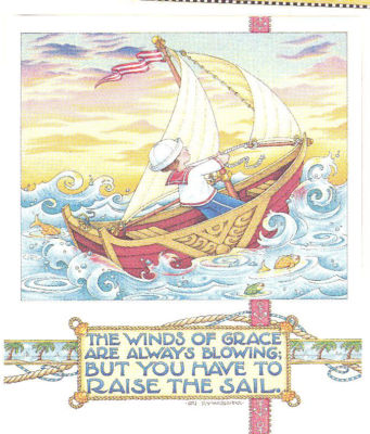 Mary Engelbreit-WINDS OF GRACE BLOWING-Handcrafted Sailboat Fridge Magnet